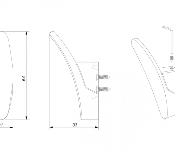 В комплект входит: крючок, крепёжная планка, саморезы 4х18 (2 шт.), крепёжный винт (1 шт.), шестигранный ключ. Рекомендуемая установка на плиту толщиной 16 мм.