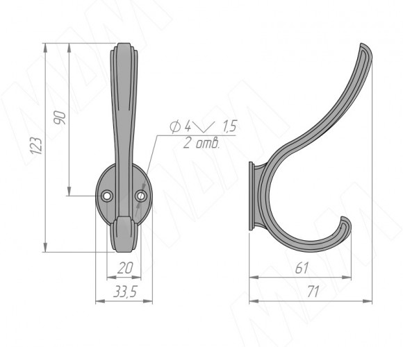 Крючок двухрожковый ZAMPA бронза состаренная HK.29.ABV