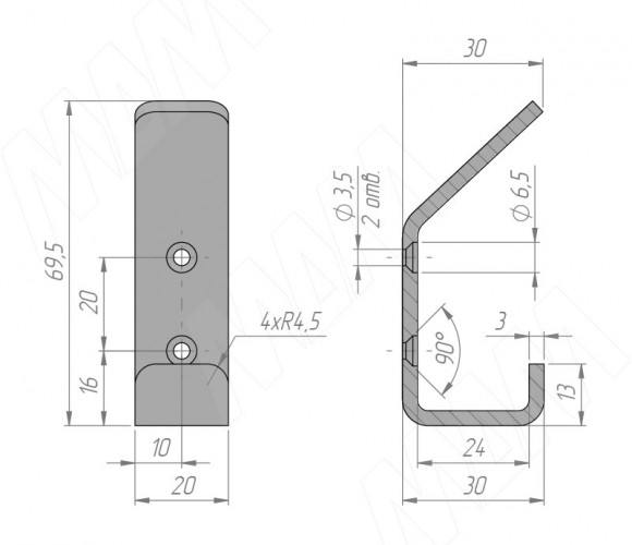 Комплектация: крючок с крепежом (саморез 3,5×45 мм — 2 шт., дюбель 6×40 мм — 2 шт.)