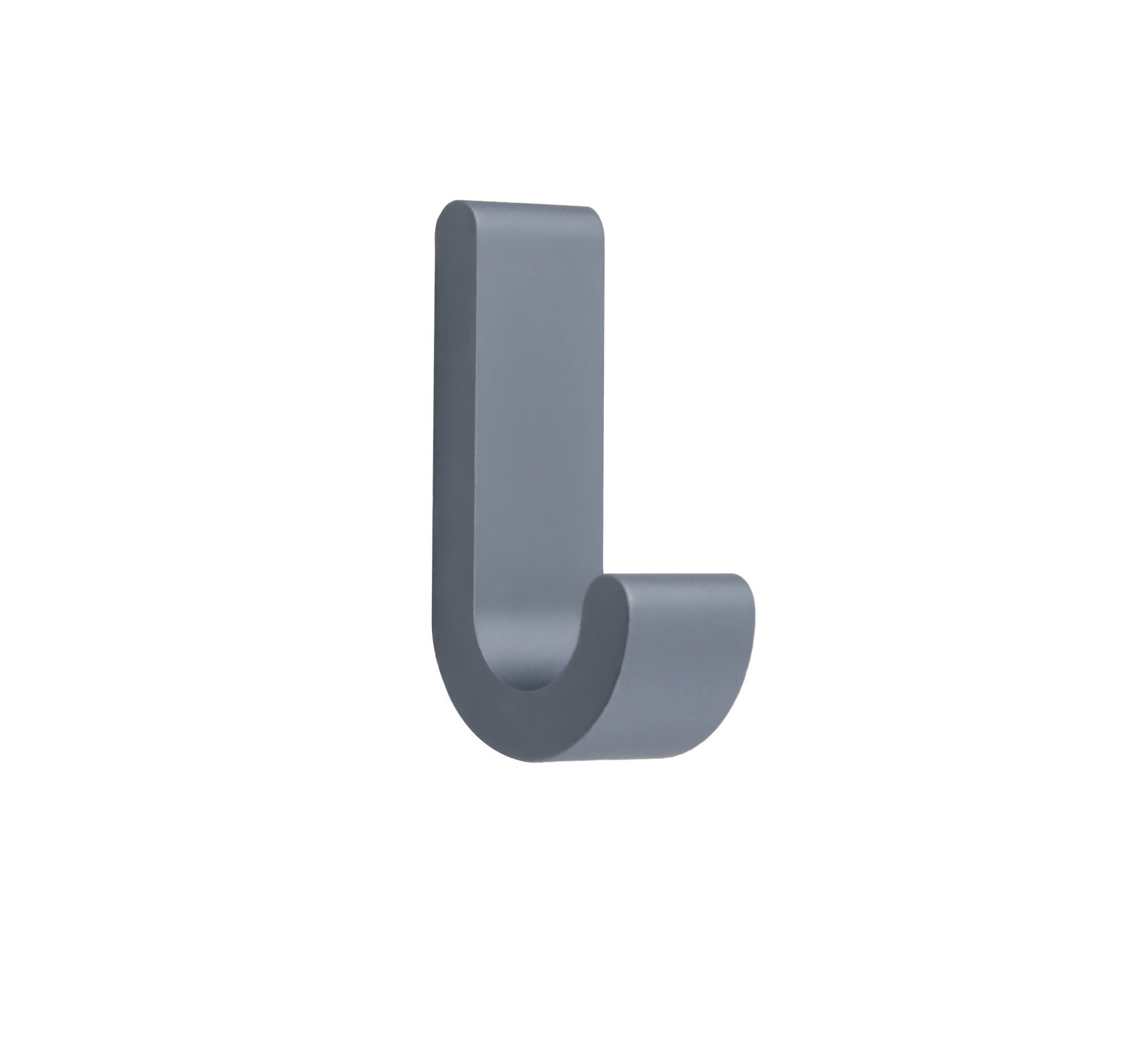 UNO K108 — однорожковый крючок скрытого монтажа из алюминия универсального минималистичного дизайна с мягким изгибом для удобного навешивания и хранения элементов гардероба и бытовых предметов.