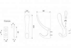 Крючок K203AB.2  Старинная латунь