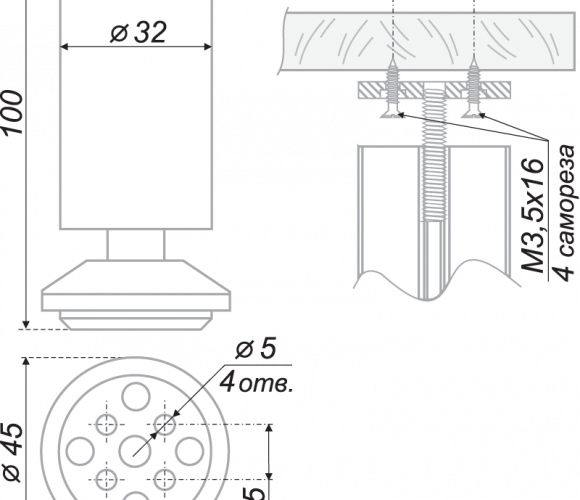 Опора цокольная 32x100 хр.полирсатин хром N301CP/SC.1