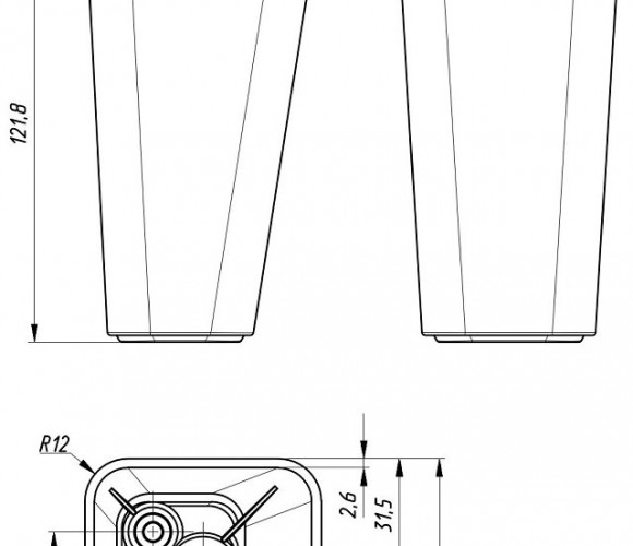 Опора SWA 014.120.065 для мягкой мебели, высота 120 мм, ширина 65 мм, крепеж на закладную гайку М8, допустимая статическая нагрузка на опору - 400 кг.