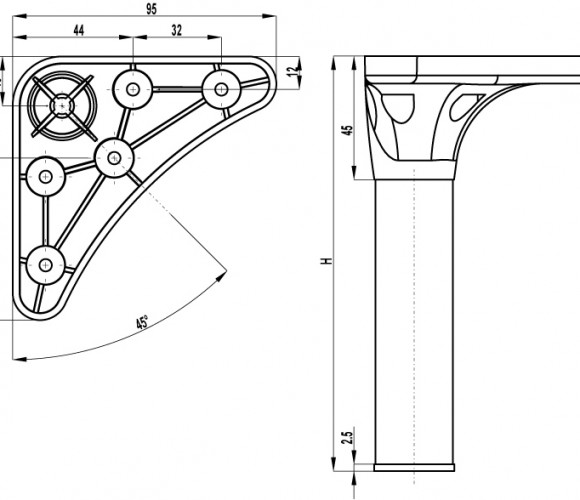 Нерегулируемая опора Х 042100 черный матовый 9005 (ТЗ)