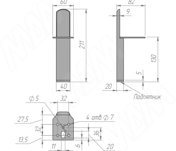Опора декоративная Н130мм черный матовый FIX027.130.BL