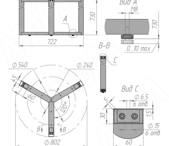 Комплектация: опора, ножка регулируемая — 3 шт.