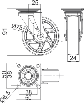 Опора колесная с фланцем, D75мм без тормоза, прозрачное CS-75