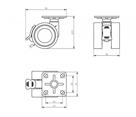 Колесо мебельное CIRCO, d-50мм, серое, со стопором - опора для передвижных мебельных конструкций. Крепится к мебели посредством металлической пластины (площадки).