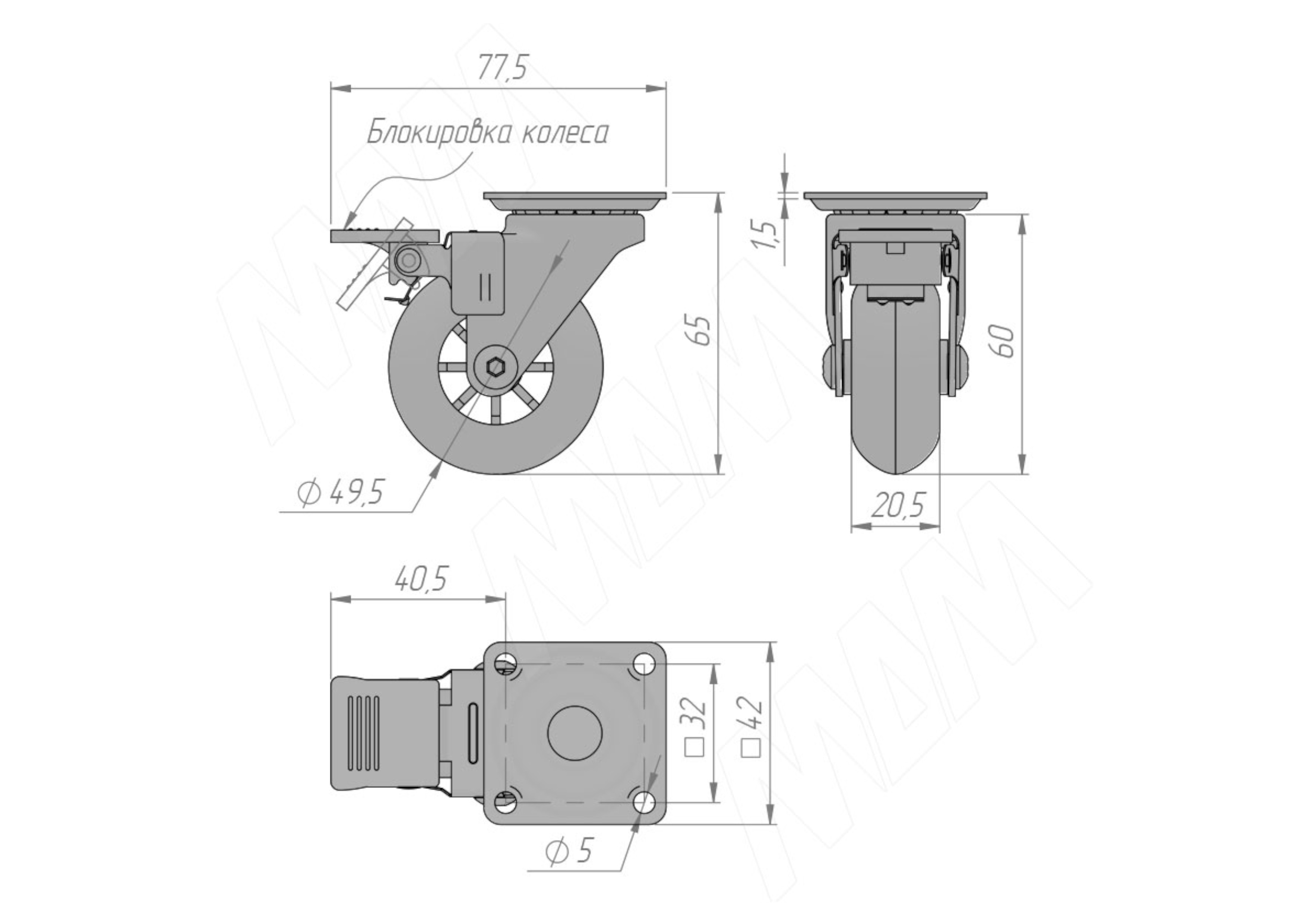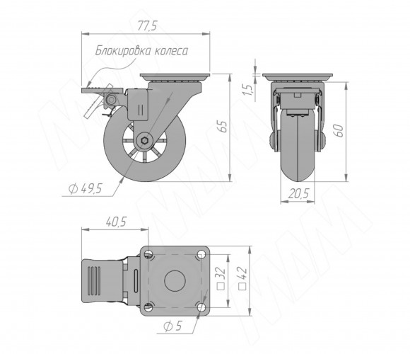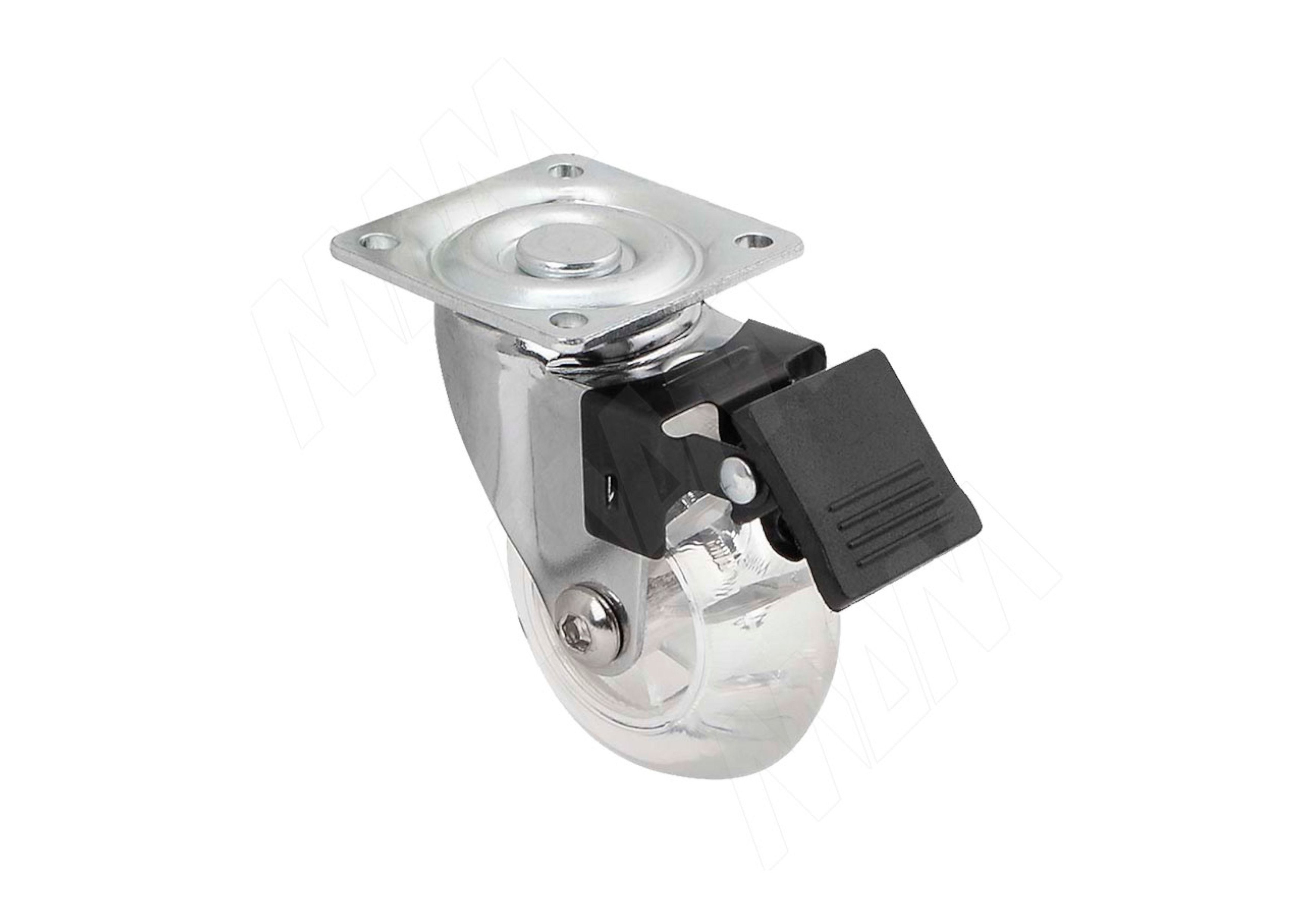 Опора колесная, D50 мм, со стопором, с площадкой, прозрачное колесо CST70 BR