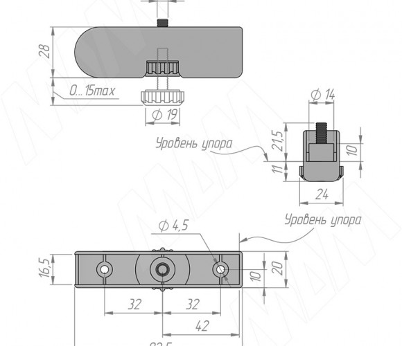 Опора регулируемая с поддержкой боковины, черная PI11 PNE