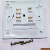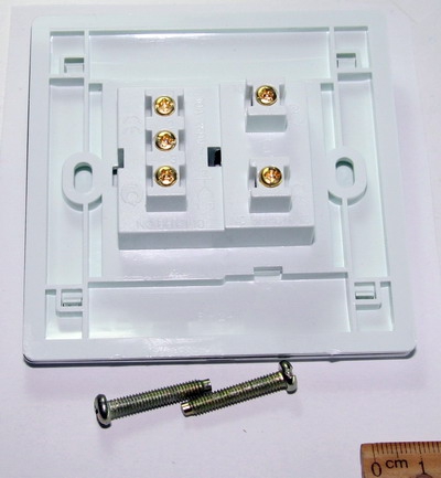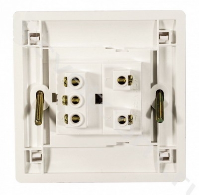Розетка с выключателем разборная. На корпусе имеется 2 продолговатых отверстия d=3 мм для ее крепления винтами (М4 х 26 мм). Провода подключаются с обратной стороны 5 прижимными винтами. Выключатель трёхпозиционный: контакт №2 (средний) общий, в зависимости от положения клавиши подключается или контакт №1 или №3. При нажатии верхней половины клавиши подключается нижний контакт (№3), при нажатии нижней половины клавиши подключается верхний контакт (№1).
