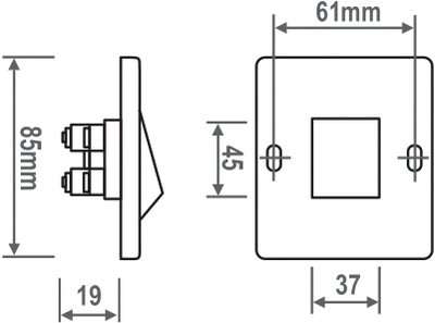 7. Размеры установочного отверстия (длина х ширина х глубина): 42 х 36 х 25 мм