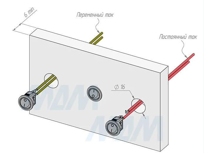 Установка и подключения: подготовить установочное отверстие ∅16 мм.