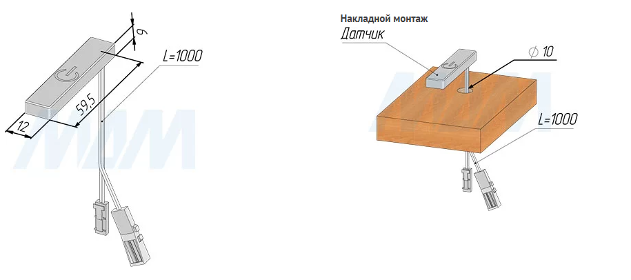 Внимание! Выключатель может работать в напряжение 12 В и 24 В, но провода выключателя оснащены коннекторами для напряжения 12 В. Для подключения светильников и блока питания с рабочим напряжением 24 В необходимо дополнительно приобрести провода-«переходники».
