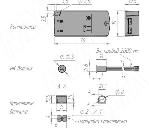 Длина провода датчика: 2000 мм