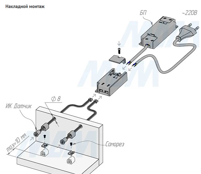 Применение: инфракрасный выключатель «на взмах руки» используется, как правило, для реализации подсветки рабочей зоны на кухне.