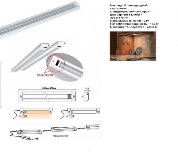 Светильник SLF BART-L18-24V-IR ИК-сенсор 24В 4Вт 5000K 305мм белый, безопасен и экологичен. Используют для освещения торгового оборудования, витрин и стеллажей. Установка и монтаж производится в соответствии с инструкцией. Все осветительные приборы сертифицированы.