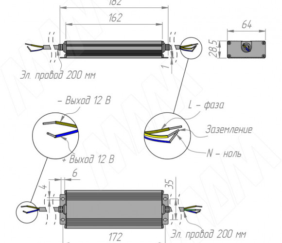 Применение: для подключения светодиодной ленты и других светодиодных источников с рабочим напряжением 12 В к сети 220 В