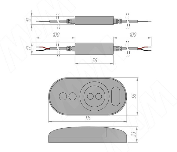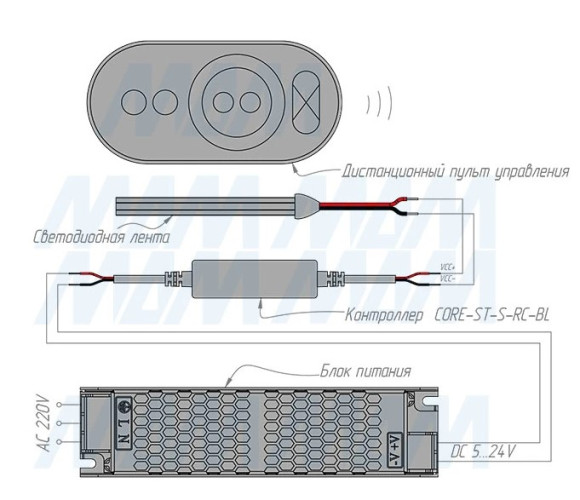 Миниатюрный диммер (контроллер) с радио-пультом ДУ для управления монохромными светодиодными лентами.