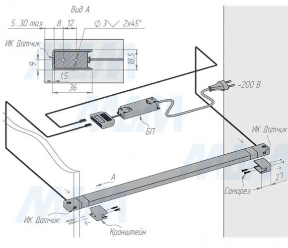 Комплектация: светильник, крепление, комплект крепежа