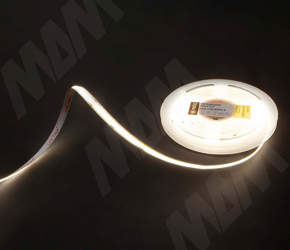 Высокая плотность диодов и общий люминофор ленты СОВ обеспечивают высокие светотехнические характеристики — в готовом решении светодиодные точки практически не видны (однородная линия света)