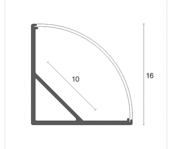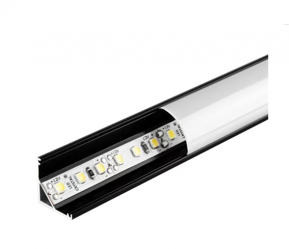 Угловой алюминиевый профиль в комплекте с матовым экраном и аксессуарами, для светодиодных лент шириной до 10мм. Цвет - черный. Габаритные размеры 16х16х2000мм.
