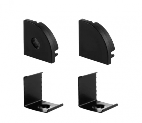 Профиль алюм.для светодиодн.лент, Угловой 16*16мм, L-2м ЧЕРНЫЙ с матовым экраном, загл. и крепежом LR49-МBL