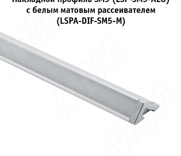 Профиль SМ5 накладной, серебро, под св. ленту, 23х11мм,L-3000 LSP-SM5-ALU-3000-AL, (без рассеивателя)