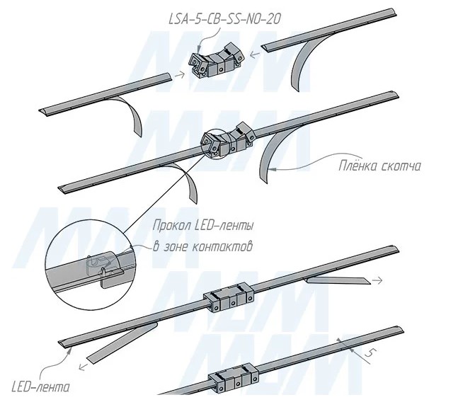 Применение: коннектор позволяет соединять два отрезка светодиодной ленты SMD или COB шириной 5 мм