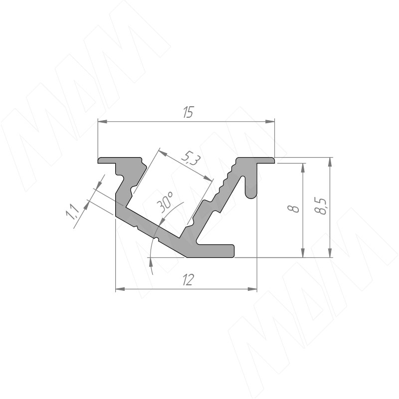 Профиль FМ10 врезной угловой узкий, для ленты с основ. 5мм. серебро, 15х8,5мм L-3000 LSP-FM10-ALU-3000-AL (без рассеивателя)