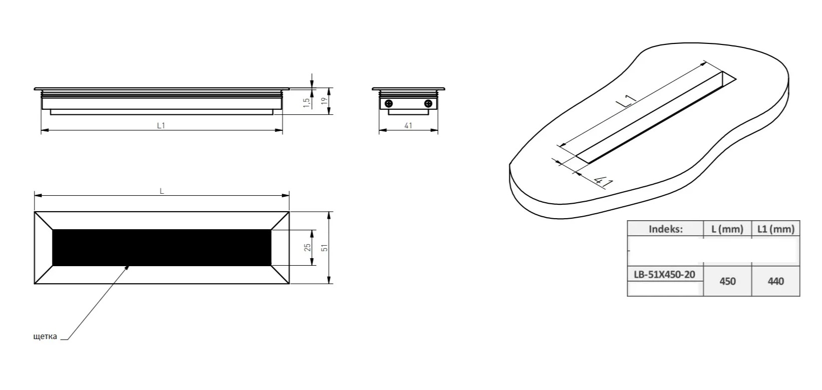 Пропуск для кабеля Merida 51х450, черный LB-51X450-20