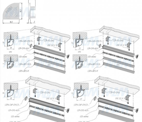 Заглушка торцевая для профиля СМ1/СМ2, серебро, LSPA-CAP-CM1/2-AL