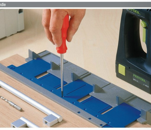 Двусторонний разметочный шаблон Hettich BlueJig Handle применяется для разметки отверстий для ручек-скоб и ручек-кнопок