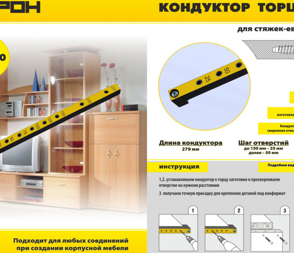 - Кондуктор применим для соединения плит на "евровинт"/"конфирмат"