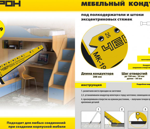 Мебельный кондуктор "угольник малый" шаг 25/50 диам. втулки 5 мм МК-19