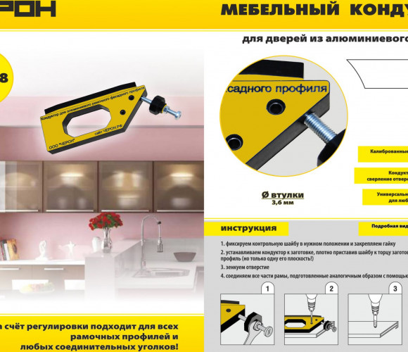 Мебельный кондуктор для сборки фасадов из рамочного фасадного алюм. профиля МК-08