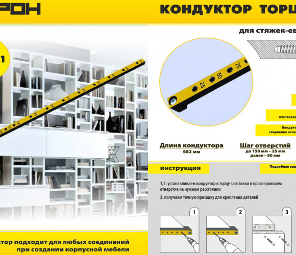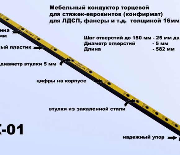 Мебельный кондуктор торцевой, шаг 25/50 диам. втулки 5 мм МК-01