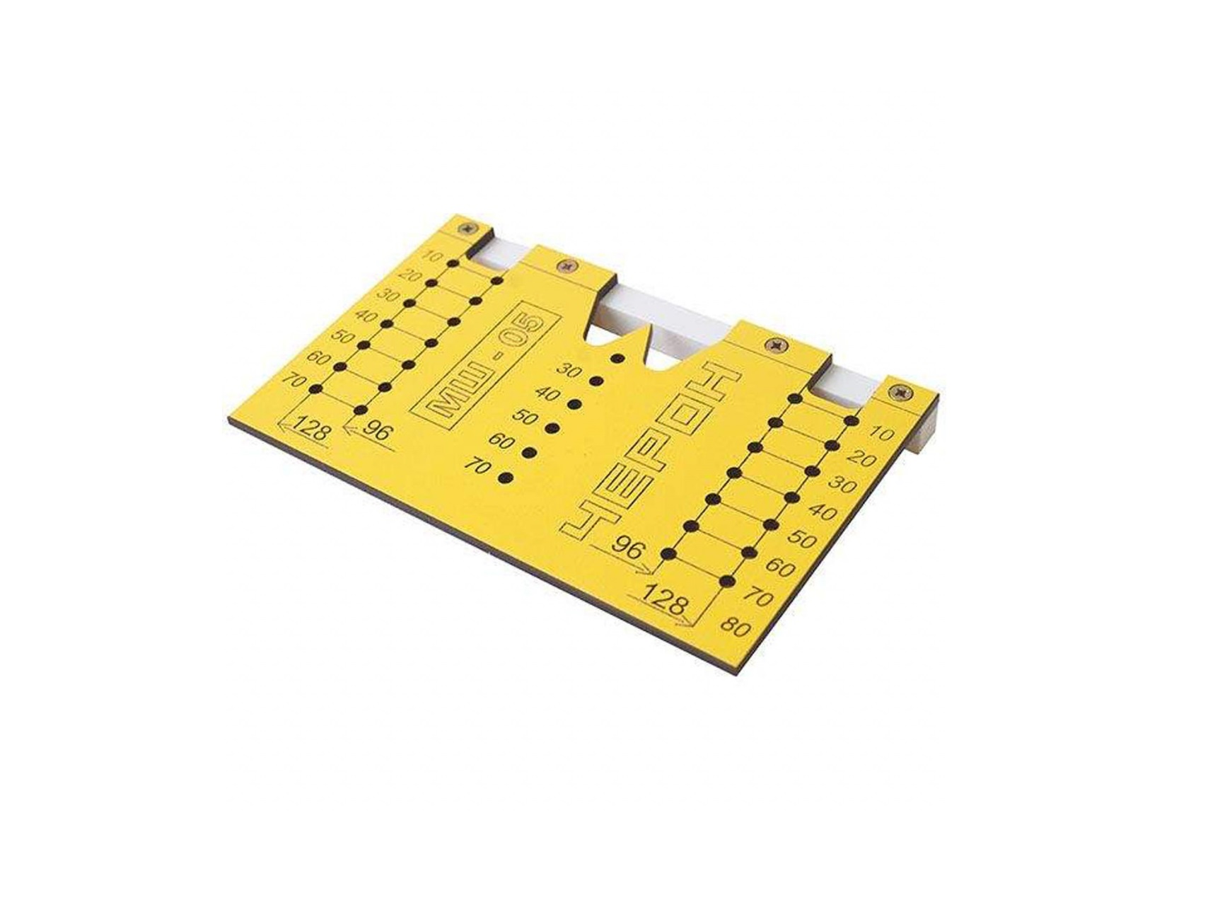 - Мебельный шаблон МШ-05 служит для разметки отверстий под ручки-кнопки и ручки-скобы (96мм и 128мм)