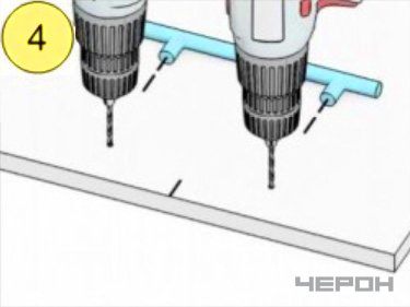 - Для разметки нужно отметить центр ручки на дверце и спозиционировать по среднему носику.