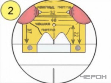 • Шилом или карандашом отметьте отверстия для креплений чаши и - центра петли.
