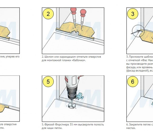 3. Для установки петель лучше всего использовать усиленные саморезы 4×16 мм или «евросаморезы». Они исключат риск вырывания петель при эксплуатации мебели.