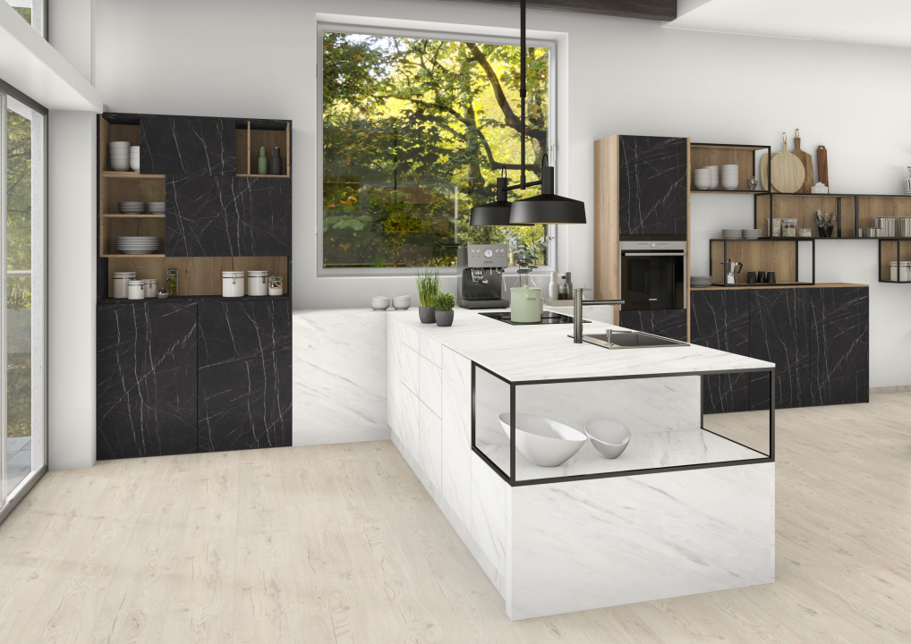 Декор Мрамор Леванто белый за счёт своего очень сдержанного рисунка на любых поверхностях кухни смотрится особенно благородно. Этот ретро-материал снова входит в моду в современных интерьерах и комбинациях. Элегантный кристаллический рисунок мрамора и увеличенный раппорт в формате XL придают декору ещё более натуральный внешний вид и позволяют использовать его также на больших поверхностях стен во внутренней отделке. Структура ST9 Мягкий матовый придаёт поверхности декора соответствующую элегантность и матовость на ощупь..