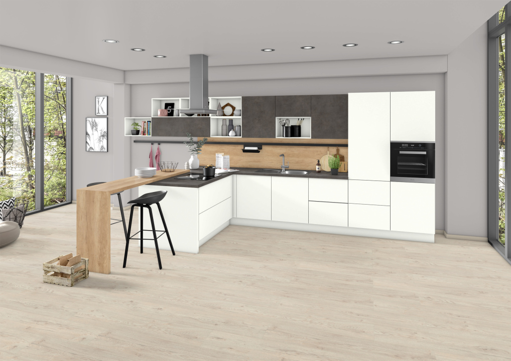 Рисунок декора Дуб Небраска имеет вид очень шероховатой и выветренной поверхности. Цветовой оттенок натуральный однороден на всей поверхности и хорошо смотрится и в современном дизайне интерьера. Благодаря структуре ST10 Шероховатые глубокие поры при прикосновении к поверхности, которая внешне смотрится шероховатой, создаётся ощущение натурального материала.