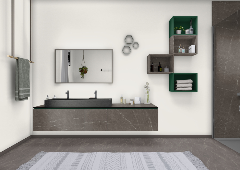 Мрамор популярен не только в белом варианте. Декор Камень Пьетра Гриджиа антрацит имеет чуть более тёплый, тёмно-серый оттенок, который может выступать в качестве привлекательного контраста к белым древесным репродукциям. Сочетания тон в тон с древесными декорами, например, с орехом, смотрятся очень элегантно и добротно. Эта репродукция мрамора смотрится очень аутентично даже на больших площадях, так как увеличенный раппорт в формате XL редко повторяет рисунок. Структура ST9 Мягкий матовый придаёт поверхности декора соответствующую прохладность и матовость на ощупь.