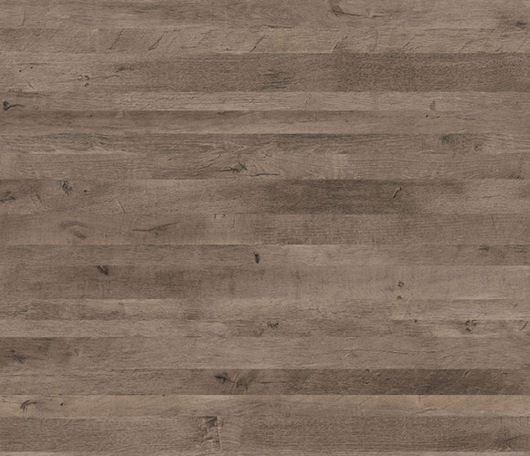 Для этого варианта декора Древесина винтаж характерен чёткий рисунок древесины дуба с выраженными полосами. Полосы различной ширины частично стилизованы под поверхности, обработанные вручную, частично имеют натуральные элементы с выветренными участками. За счёт своего рисунка, идущего по всей поверхности единым целым, столешницы в этом аутентичном декоре становятся эффектным акцентом на кухне. Благодаря однородному цвету серый эта имитация древесины не смотрится слишком раздражающе и поэтому хорошо сочетается с фасадами в однотонных декорах со структурой или также в довольно лаконичных репродукциях материалов.