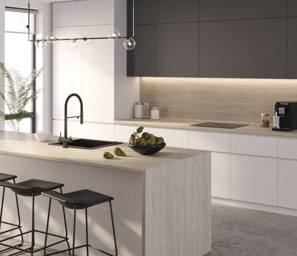 Роскошный, солидный и стильный! Этот декор способен придать интерьеру вашей кухне уникальный внешний вид, благодаря сочетания имитации рисунка натурального лесного ореха и структуре поверхности. Декор отлично вписывается в интерьер как классической, так и кухни в современном стиле, добавляя нотки тепла и уюта, а столешница в декоре Орешник способна стать настоящим украшением вашего интерьера.