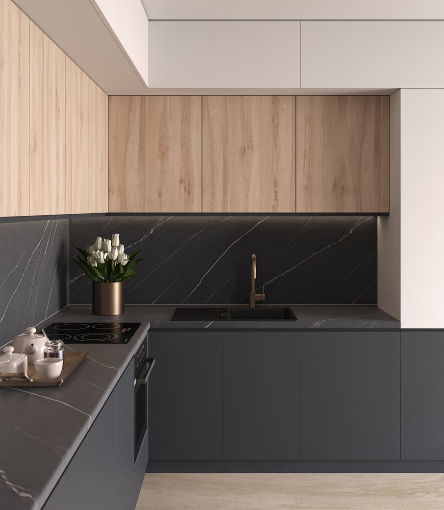 Темный монументальный декор, будто бы пронизан многочисленными изломами вулканической породы с тонкими светлыми прожилками. Этот декор идеально впишется в интерьер современной кухни и придаст особенный шарм в ее оформлении.