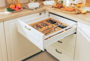 Hettich унифицировал присадку под все уровни оснащения. Меняется только наполнение, корпус и схема раскроя — нет. Простое масштабирование линейки без потери скорости производства.