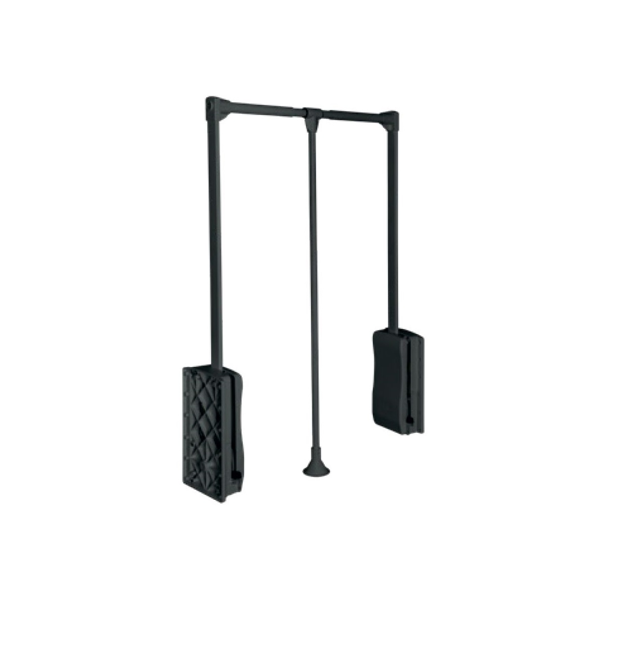 Пантограф 60/83 стальной, графит - гардеробный механизм, посредством которого опускается штанга с одежными вешалками в шкафу. Вы открываете (отодвигаете) дверь шкафа, тянете за ручку механизма, перекладина с вешалками смещается вниз, и вы берете нужный предмет одежды.