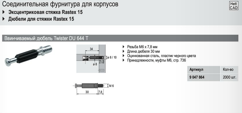 904786400 DU 644 Twister, дюбель под муфту размер 30мм, М6